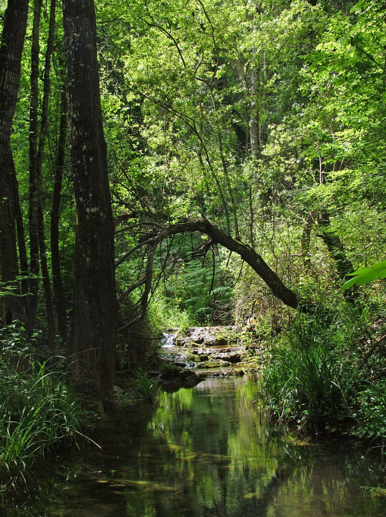 A ambos flancos del cañón, el paisaje nos susurra un pasado industrial y agrícola que la naturaleza se afana en reclamar. Es sobrecogedor hallar las viejas caleras hoy vestidas de terciopelo por el verdín y los líquenes, o las acequias silenciadas, ahora colmatadas por el tiempo y la hojarasca. Allí donde antes reinaba el ager, el espacio dominado por la mano del hombre, los antiguos bancales apenas se intuyen bajo la densa fronda que los abraza.