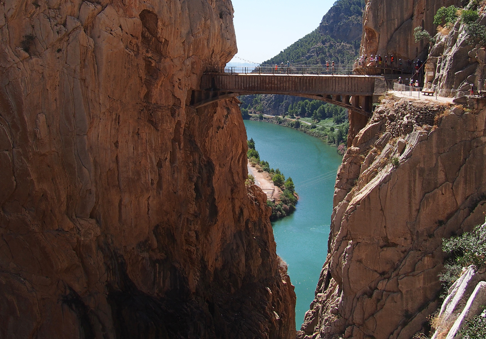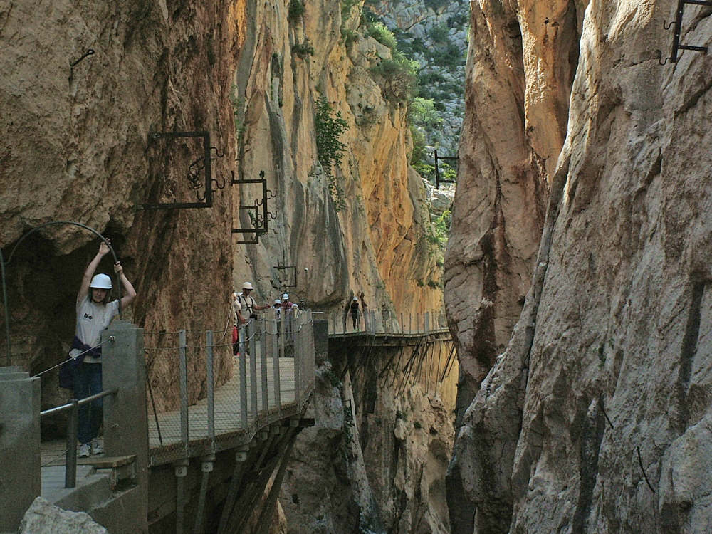 El Caminito del Rey es uno de los senderos más espectaculares de Europa. Discurre por los desfiladeros de Gaitanejos y de los Gaitanes a través de unas pasarelas asidas a tajos que llegan a alcanzar alturas superiores a los 200 m de caída vertical. La seguridad del Caminito te permitirá vivir una experiencia vibrante; pura adrenalina